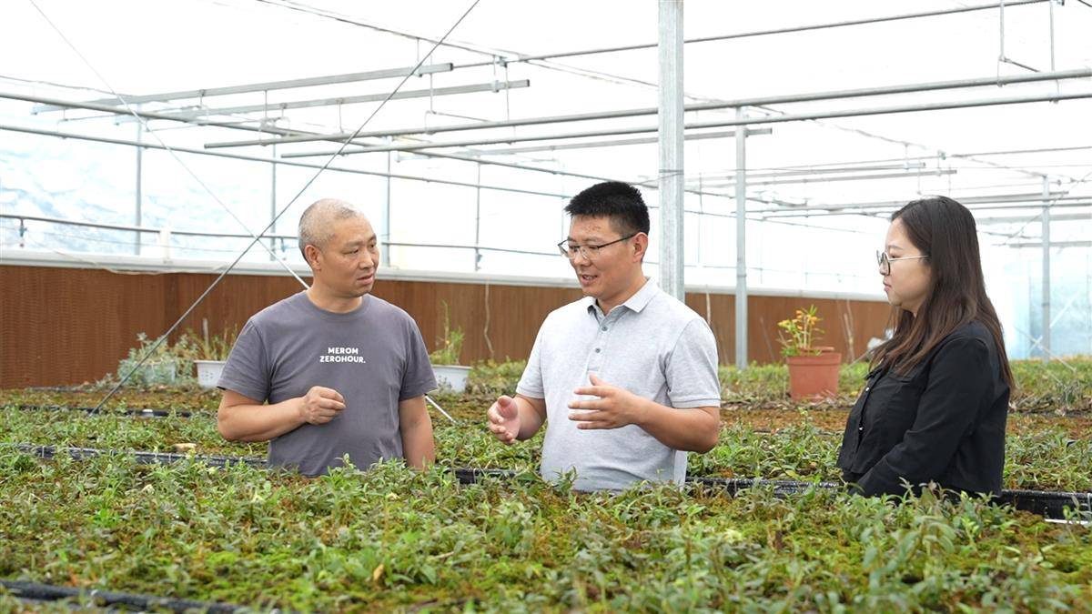陈风雷在温室大棚内查看石斛幼苗生长情况。(通讯员供图)