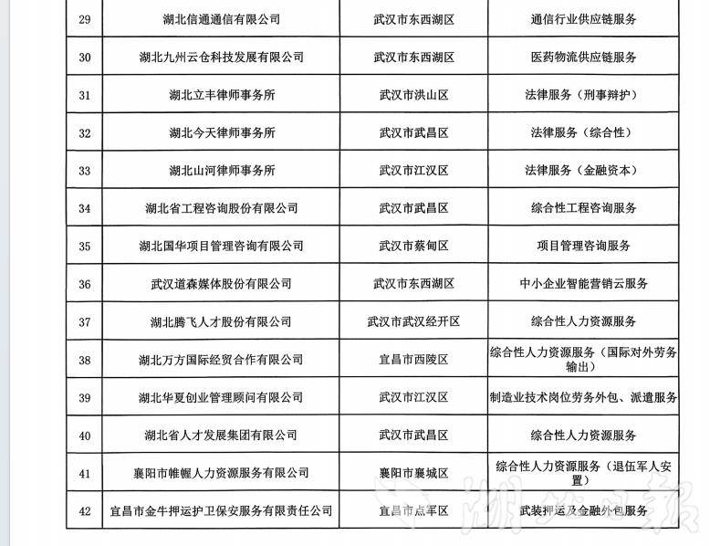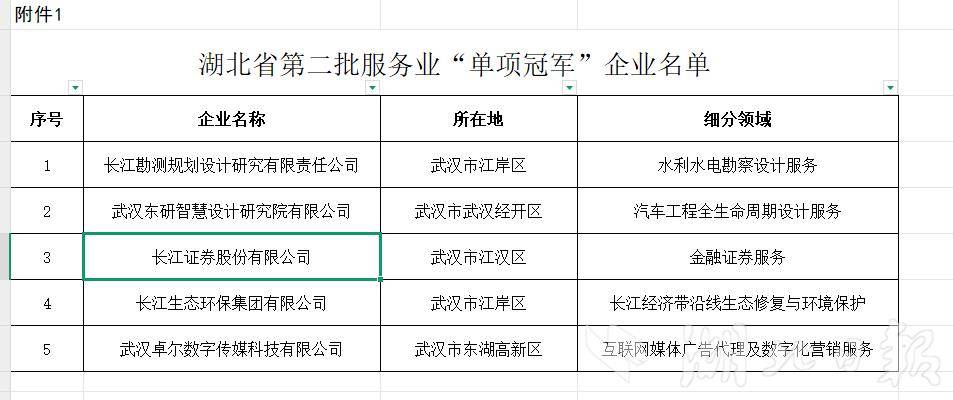 湖北省第二批服务业“单项冠军”企业名单