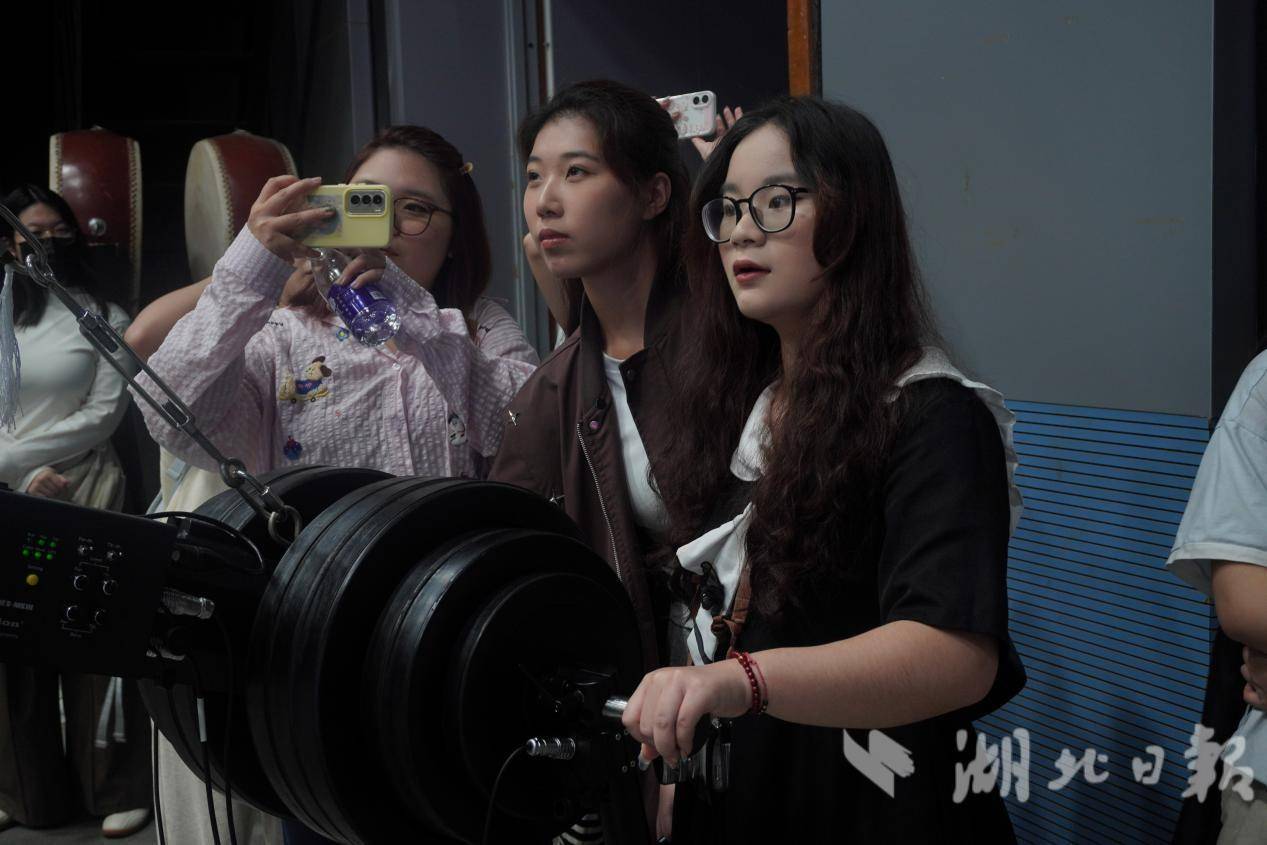 同学们体验虚拟演播厅内摇臂操作。