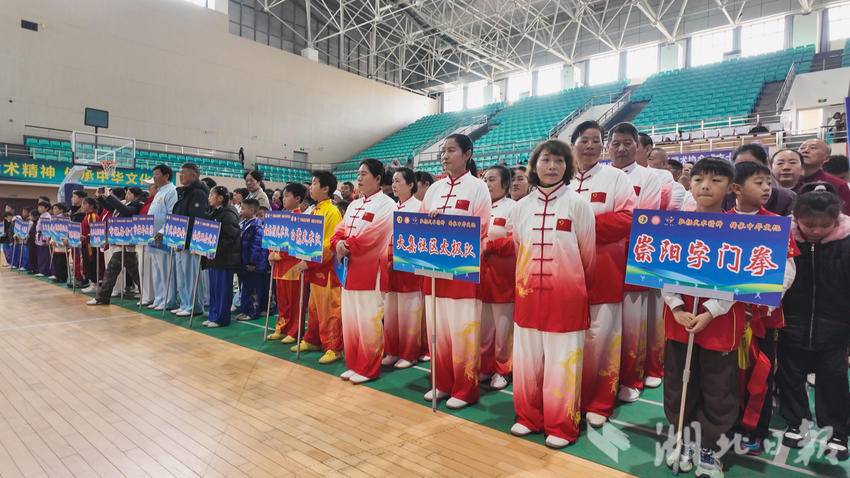 湖北日报客户端讯(通讯员田明 王蓓蓓)11月22日,崇阳字门矮桩拳省级申遗成功暨崇阳县武术协会成立十周年武术交流展示活动在崇阳县体育馆启幕。来自咸宁市各县(市、区)的19支参展队伍、263名武术爱好者齐聚一堂,展示了包括省级非遗崇阳字门矮桩拳在内的各类武术拳种、器械套路,以武会友传承非遗文化,切磋技艺彰显武术雄风。