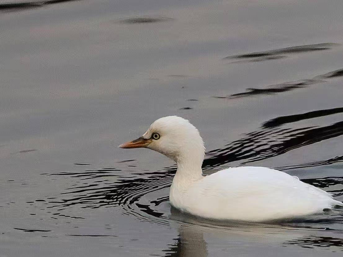 11月23日,房县林业局工作人员伍超在马栏河开展野外观鸟时,意外发现一只罕见的白化小䴙䴘。
