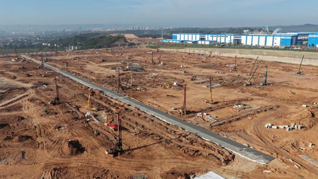 强夯机、打桩机、吊车,163台机械设备默契配合,将一根根桩基蹬入地下。“项目一期,33天完成1191亩场平。如今项目二期,40天完成了1800亩场平,又一次刷新‘楚能速度’!”夷陵城发公司总经理龚小平说。