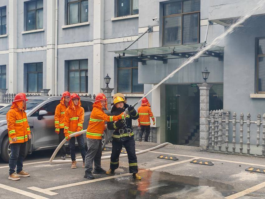 消防救援人员还开展了消防安全知识培训,现场指导灭火器的操作方法。