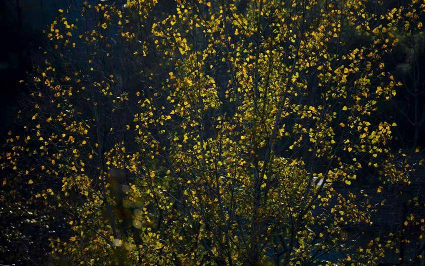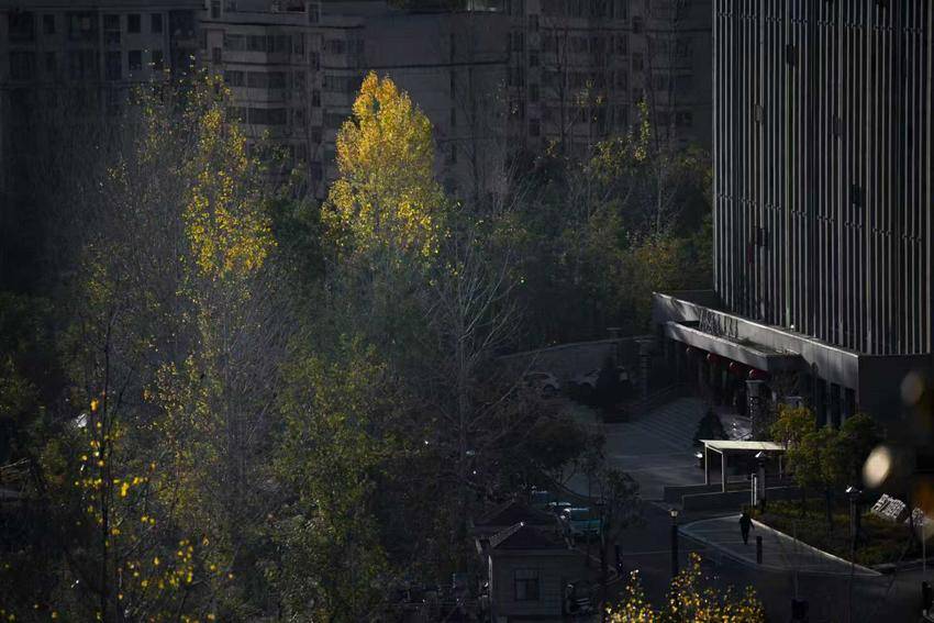 初冬的阳光透过枝叶的缝隙洒下,形成一片片光影交错的图案,给这片山林增添了几分神秘的氛围。