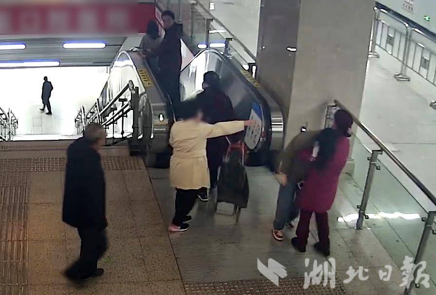 这暖心一幕,发生在11月24日早上8时17分的武汉地铁7号线三阳路站。一名女乘客进站后,突感头晕目眩、浑身乏力,一时难以站稳,只好停在手扶电梯旁边,左手勉强倚住扶手支撑身体,很快瘫软在地,恰好路过的热心乘客将其扶起。