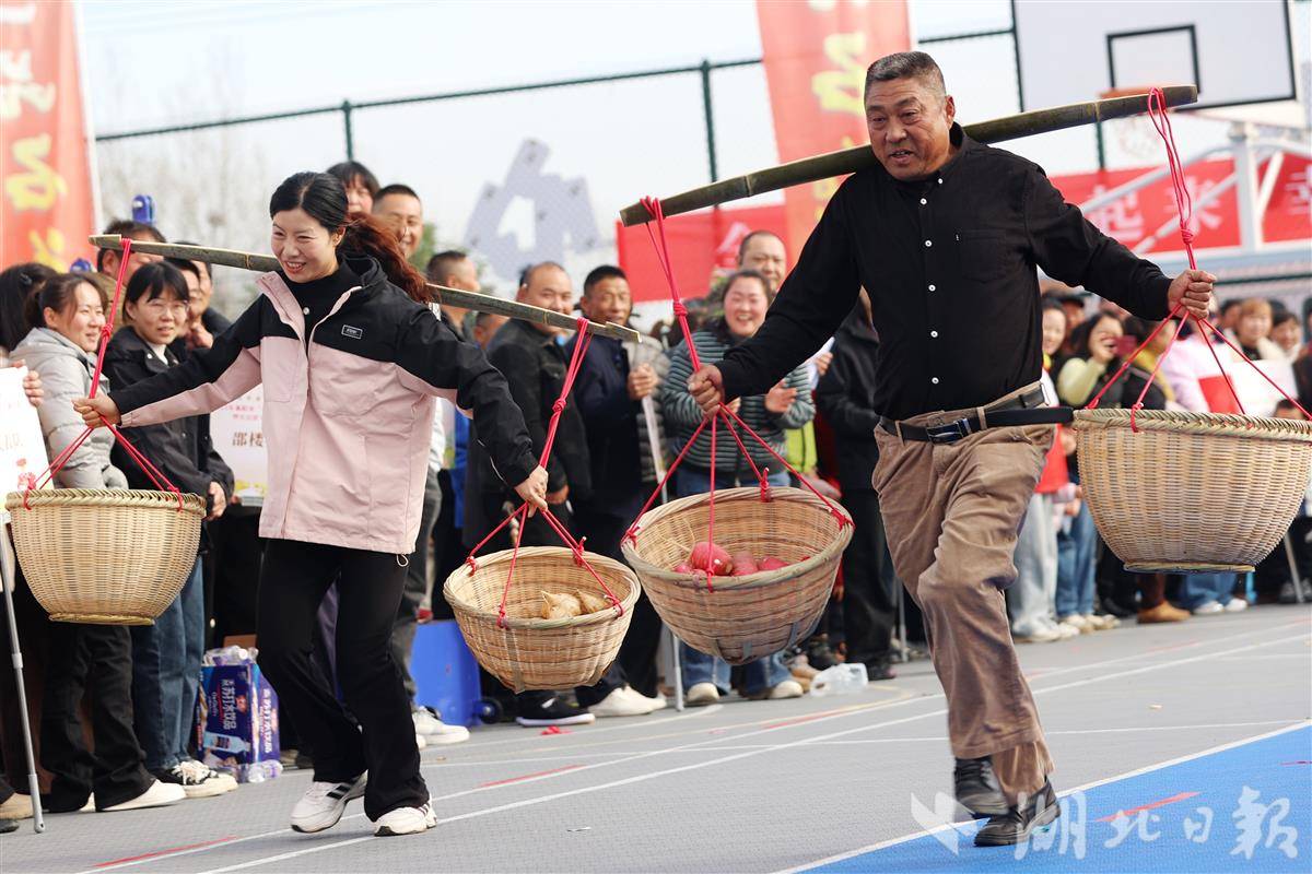 11月22日,襄阳市太平店镇李家湾村,农民在参加“五谷满仓”挑粮赛项目比赛。