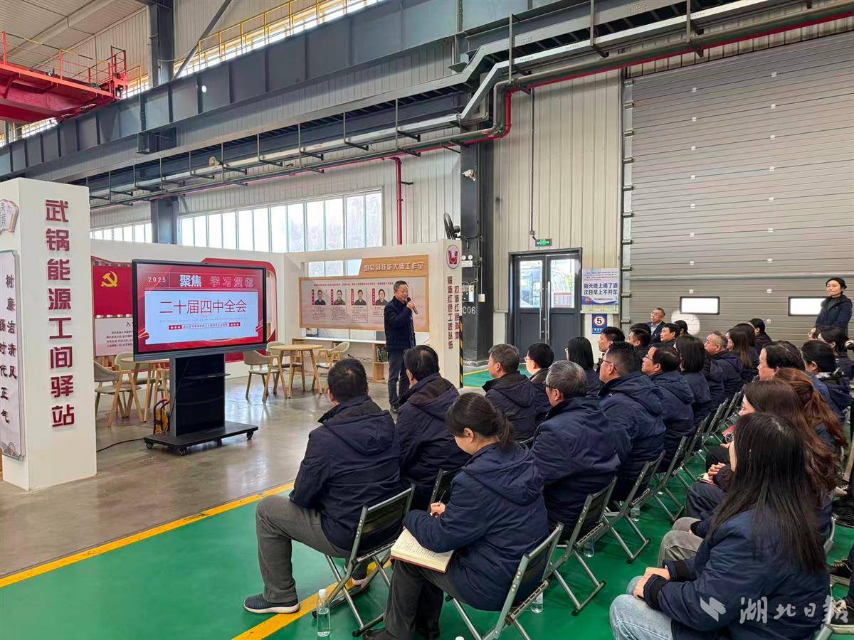 11月25日,武汉武锅能源工程有限公司厂房内机器轰鸣,学习贯彻党的二十届四中全会精神省专家及代表人士武汉投控集团宣讲会在此火热进行。