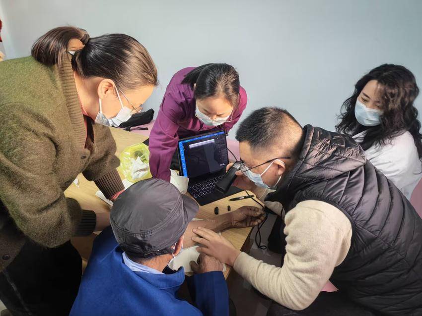 在血液透析室,专家团队开展“掌上超声”实操指导,聚焦透析患者瘘管维护,现场演示血流监测、狭窄排查技巧,结合实时成像讲解养护要点与问题处理方法。同时,还围绕肾病全周期管理展开讲解,详解透析患者饮食、容量管理及并发症早期干预要点,结合临床案例教大家居家护理关键,并强调肾功能与电解质定期复查的重要性。