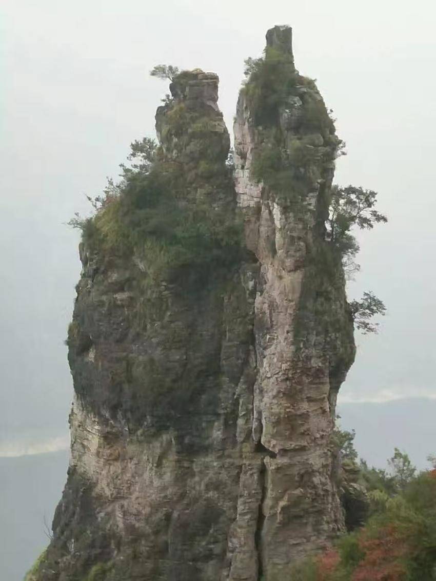 早年间,村人出山,须得从石柱脚下的深谷里穿过。两旁崖壁逼仄,仰起头来,只看得见一线天,那天也被石柱裁得瘦瘦的,像一道青色的伤疤。那时的石柱,是压在心头的,是威严而令人屏息的。后来,公路像一条灰白的带子,盘绕着山体修了上来。我们坐在车里,便能从容地、从各个角度端详它的全貌了。