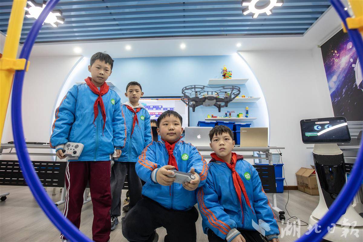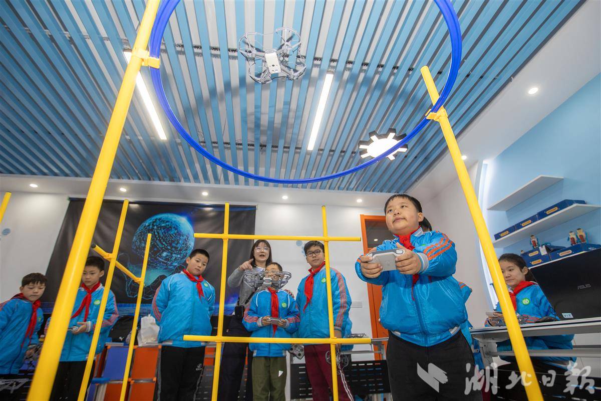 11月25日,在襄阳市大庆路小学,学生们在操控无人机。