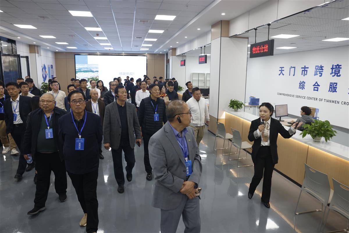 嘉宾参观天门市跨境电商产业园综合服务中心。(湖北日报通讯员 张俊 摄)