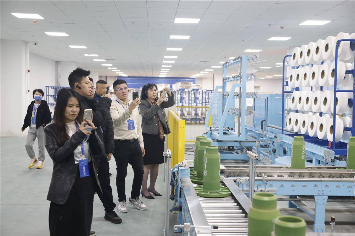 嘉宾在化纤纺织产业园参观。(湖北日报通讯员 张俊 摄)