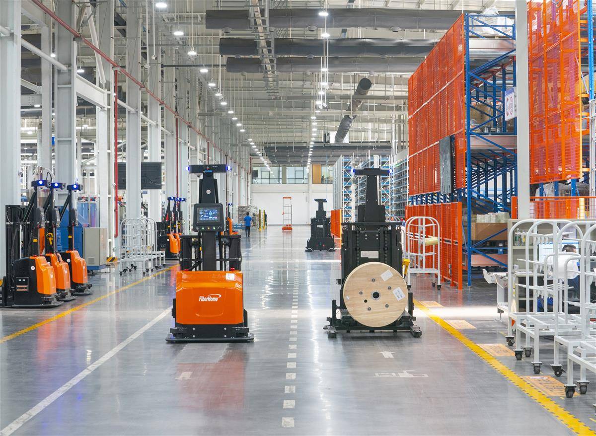 位于光谷的烽火通信数字工厂生产热火朝天,却少见人影。(湖北日报全媒记者 魏铼 摄)