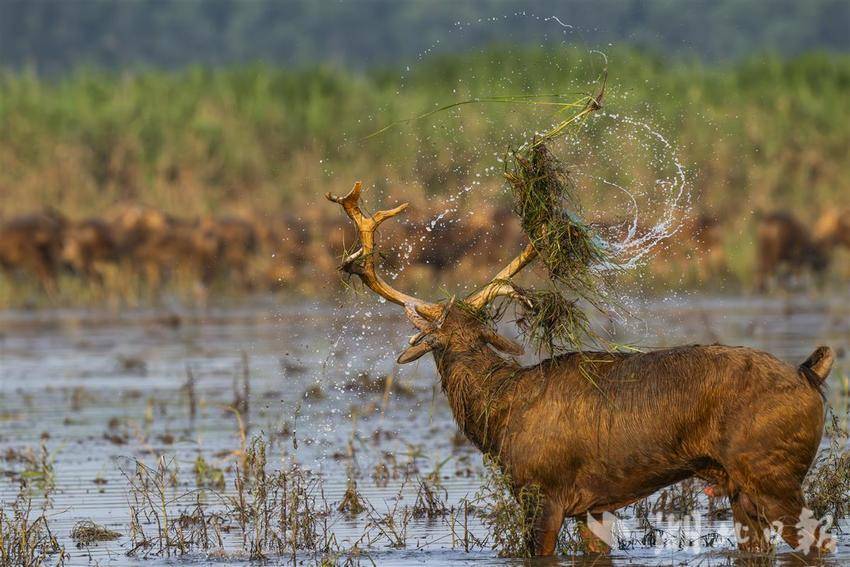 石首麋鹿国家级自然保护区“湿地精灵”麋鹿 雷刚 摄