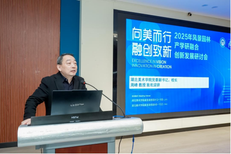 周峰在欢迎辞中阐述,“向美而行”是学科初心,体现为对生态安全、文化认同与生活诗意的系统追求;“融创致新”是发展路径,需打破学科壁垒,推动艺术、生态与科技深度融合。湖北美术学院将依托百年美育积淀和荆楚文化资源,持续参与城市更新、乡村振兴等实践,以产学研协同创新服务美丽中国与长江经济带建设。