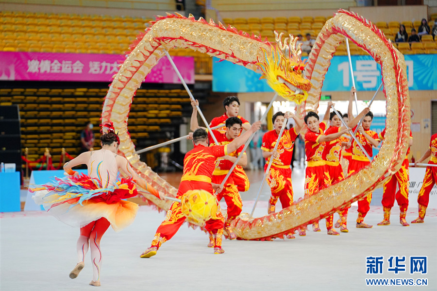 11月13日上午,全运会群众展演舞龙舞狮项目决赛中,湖北队发挥出色,勇夺舞龙自选和彩带龙自选两个项目第一,为湖北体育代表团群体项目再添两金。