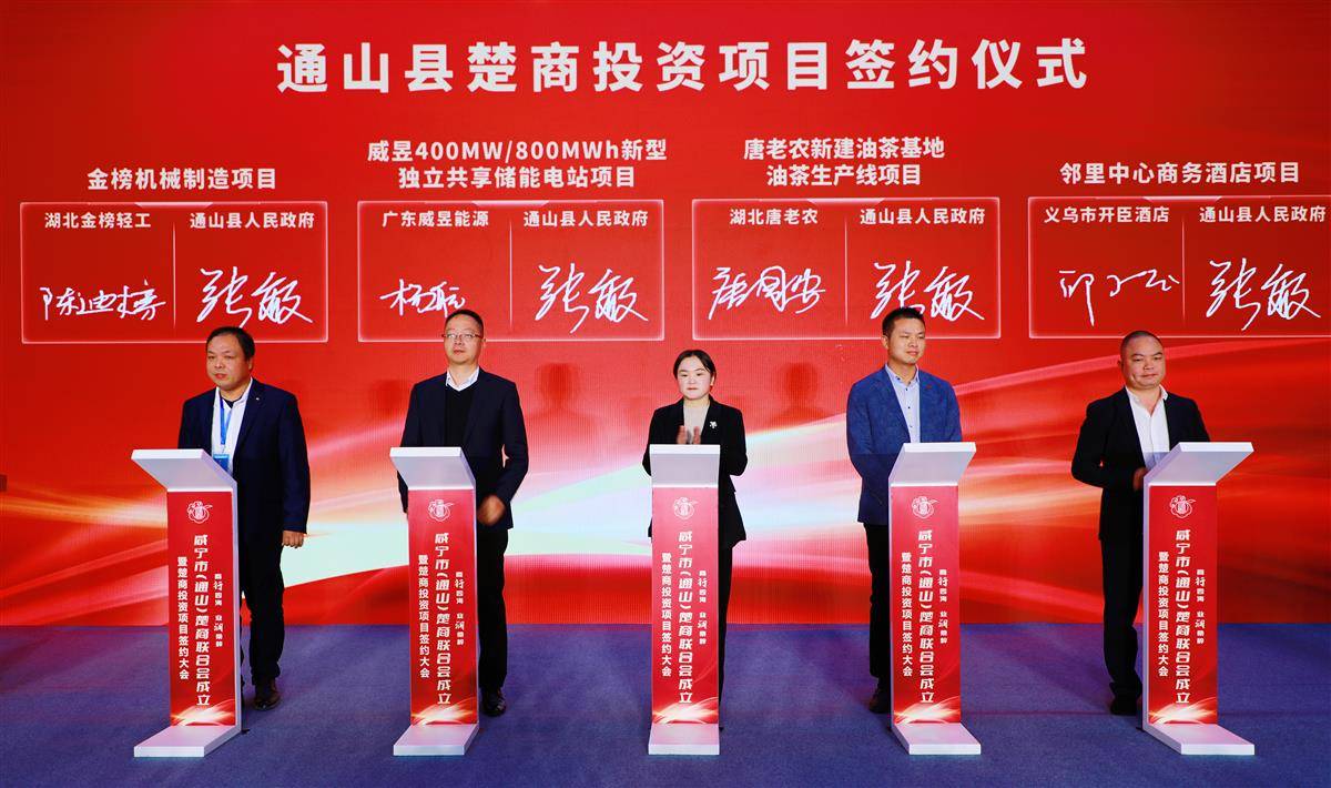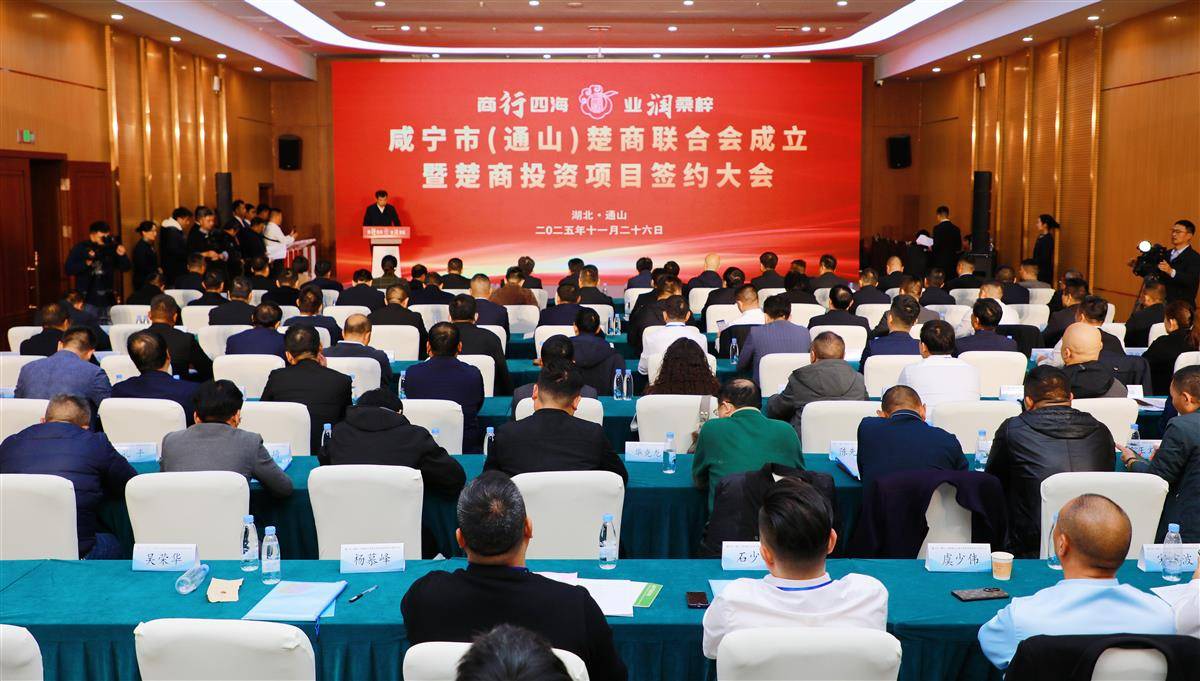 湖北日报讯(记者张进、通讯员李江湖、金珂如)11月26日,咸宁市(通山)楚商联合会成立暨楚商投资项目签约大会在通山县举行。来自全国各地的楚商代表、企业家及各界嘉宾一道见证联合会揭牌,并现场签约一批重点项目,为通山高质量发展注入新动能。