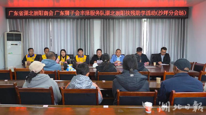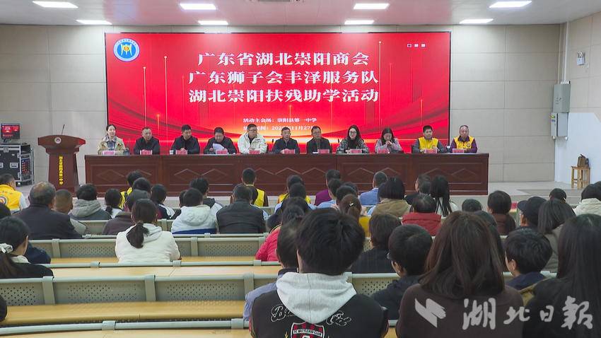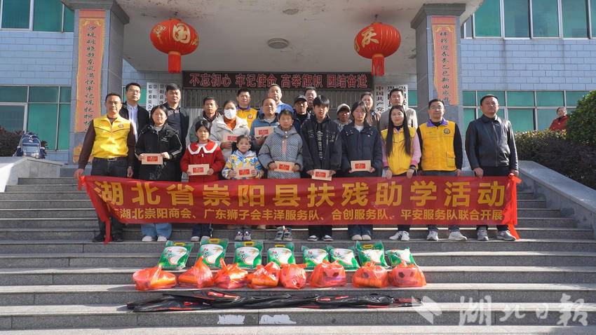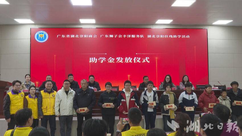 湖北日报客户端讯(通讯员胡昊宇 赵浩 尧康 石盾)11月27日,一场充满温情与希望的扶残助学活动在崇阳县暖心举行。在县委统战部、县工商联倡导下,广东省湖北崇阳商会与广东狮子会丰泽服务队16位代表携手,为崇阳县96名家庭困难学生送来了总计19.2万元的助学金,用爱心为孩子们的梦想插上翅膀。