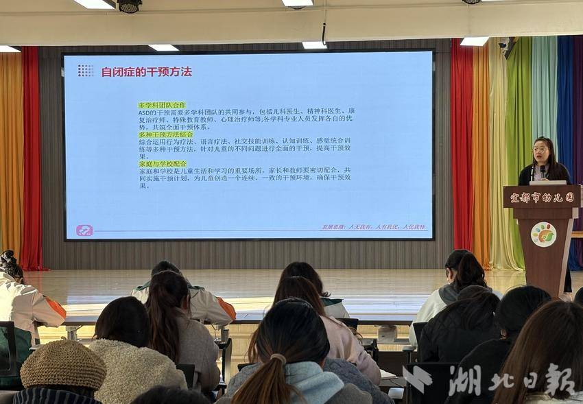 湖北日报客户端讯(通讯员 刘若赟)为夯实融合教育基础,提升教师特殊儿童照护专业能力,11月28日上午9点,宜都市幼儿园举办“医育结合 幼儿园特殊儿童照护核心技能提升计划——从‘行为解读’到‘社交引导’自闭症”专题培训,邀请市妇幼保健院儿童保健科副主任、主治医师李雪川现场授课。