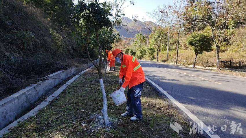 湖北日报客户端讯(通讯员刘文豪)连日来,崇阳县瑞阳交投集团通衢公路养护有限公司全面开展行道树刷白作业,为树木御寒防虫、为司乘增亮警示,也为公路增添了一道靓丽的风景线。