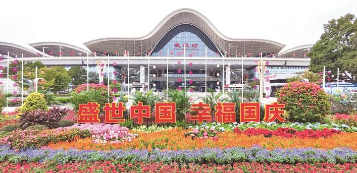 今年国庆假期,花儿映红盛世,笑颜祝福祖国,该中心精雕细琢的10处园林小景闪耀武汉街头。如,武汉火车站站前广场的“盛世中国 幸福国庆”小景,橙黄向日葵映衬一片红色花海,红亮的一品红与淡蓝的绣球对撞,朱红的一串红和浅紫的鼠尾草形成一道道花浪,刚刚抵达或准备离开的游客们在此争相打卡,收获幸福。