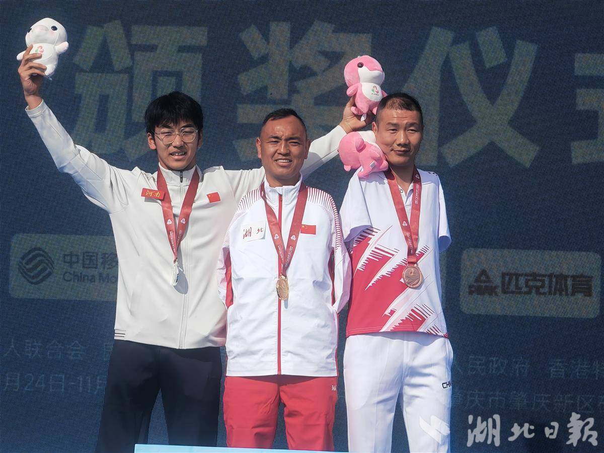 其中,运动员张金波以1:22:29的佳绩夺得全国残特奥会湖北首金。曾是游泳运动员的他,2008年退役后返乡创业。听闻本届残特奥会新增了铁人三项项目,他在随州市残疾人人才选拔赛训练基地负责人李丰强的支持和鼓励下,历经一年半的集中训练,重新回到赛场。“拿到第一的时候,我瞬间觉得训练的煎熬都是值得的!”张金波表示。