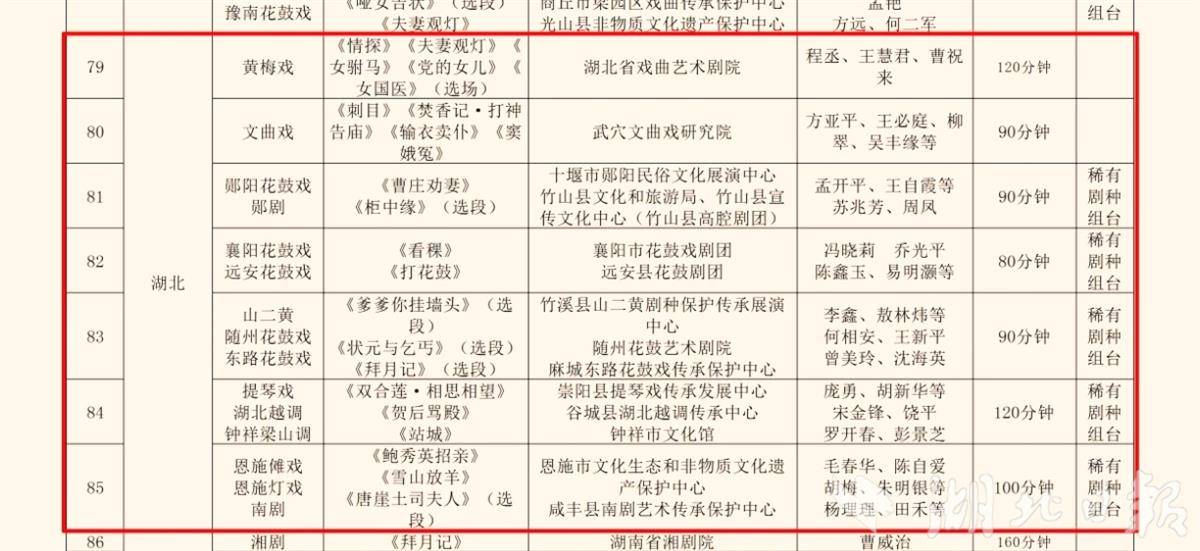 湖北拟入选剧目名单(官方截图)