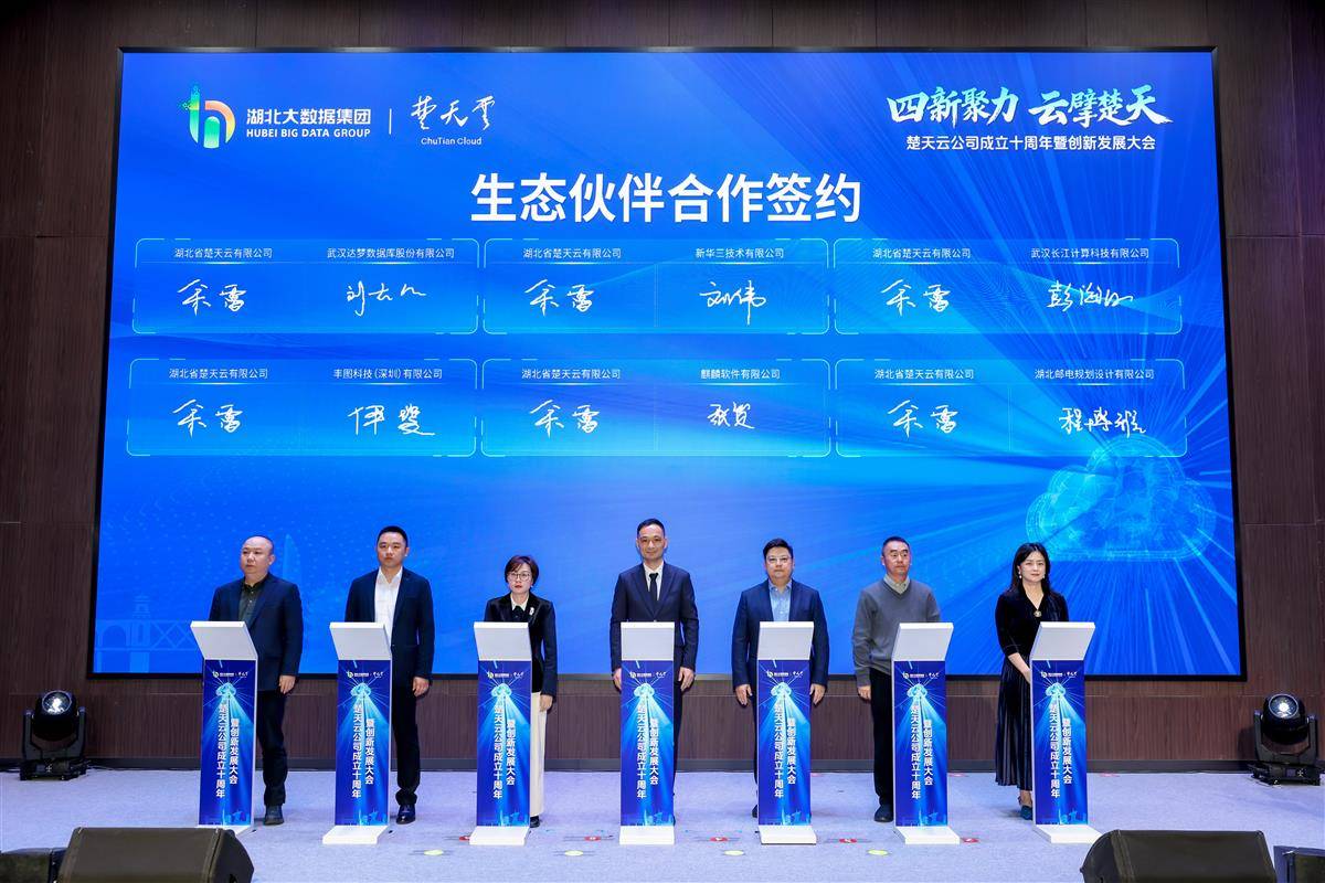 在大会现场,湖北大数据集团与中国信科集团就共同推动楚天云公司做强做优做大签订战略合作协议,楚天云公司还与武钢大数据产业园等多家头部企业集中签约,覆盖人工智能、大模型、量子计算等前沿领域,共同构建开放协同的产业生态。