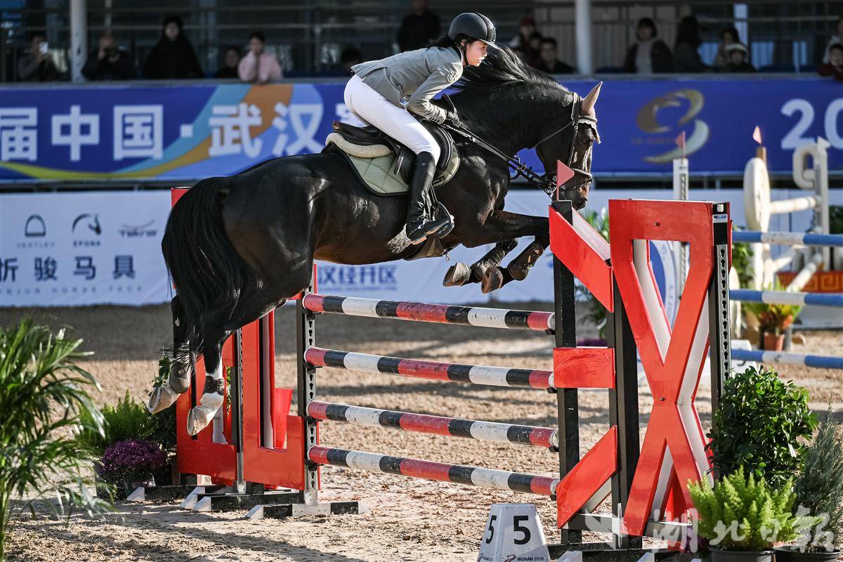 11月29日,一名选手驾驭赛马在场地障碍赛中。(湖北日报全媒记者 任勇 摄)
