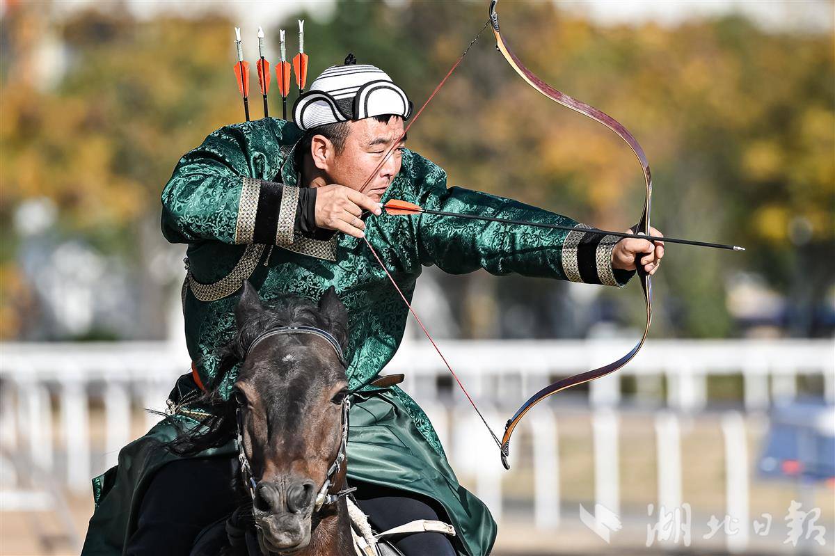 11月29日,一名骑师表演跑马射箭。(湖北日报全媒记者 任勇 摄)