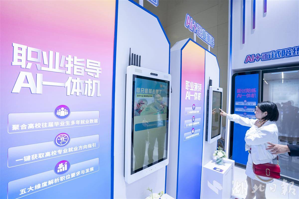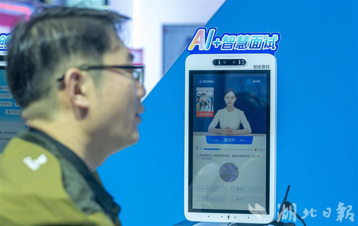 11月29日,第三届全国人力资源服务业发展大会,观众体验AI智能面试、简历处理、职位推荐等场景。“AI赋能现代人力资源服务新未来”是湖北馆的核心主题之一,也成为本届大会的最大亮点。大会现场,400多个AI智能机器人覆盖远程面试、简历处理、咖啡服务等场景,AI技术融入人力资源服务的各个环节,推动行业向数智化转型。作为大会的重要组成部分,重点行业专场招聘会共组织了600多家重点企业。涵盖先进制造、光电子信息、大健康等湖北51020重点产业,还包括国家和省级重点实验室,共释放4万多个优质岗位,吸引了高校毕业生、海外留学生等众多求职者。(湖北日报全媒记者 魏铼 摄)