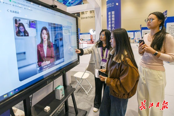 在第三届全国人力资源服务业发展大会AI智能体验区,求职者体验AI模拟面试。记者史伟 实习生高云鹏 摄