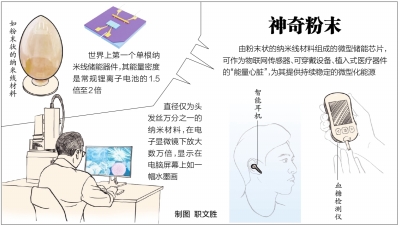 武汉理工大学麦立强教授团队经过20多年科研攻关,建立了世界上第一个单根纳米线储能器件,其能量密度是常规锂离子电池的1.5—2倍,在零下20℃下容量仍可达到室温的90%以上。这意味着,无论是用于电动汽车还是规模储能,它都能有效促进清洁能源的高效利用,直接助力能源结构的低碳转型。