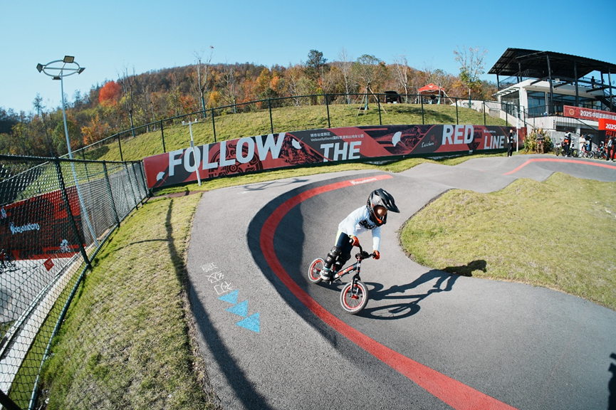 在十岁男子组的比赛中,来自北京的谢朋序凭借精湛的技艺与过人的速度夺得冠军。2025年他追随大V参加了全部五站分站赛,并将于11月30日参加总决赛的角逐较量。优秀的成绩来源于日复一日的刻苦训练,但对于谢朋序而言,比成绩更重要的是释放对骑行运动的热爱,在泵道上骑行让他感受到发自内心的快乐。未来的骑行旅程中他将继续热忱投入,全身心地享受运动的乐趣。
