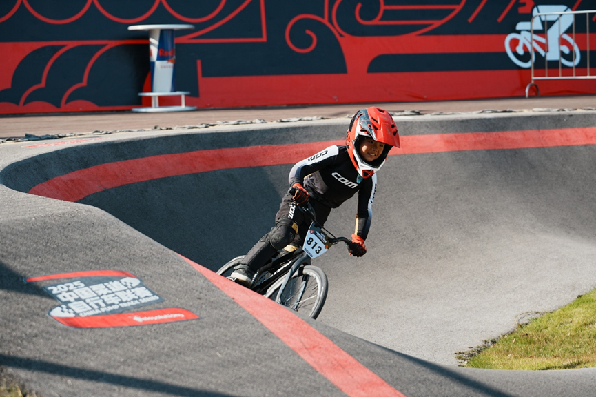 竞争最为激烈的精英组比赛最受关注,来自杭州的章巧颖在率先举行的女子组比赛中取得第一名,这也是她在2025中国泵道自行车联赛分站赛中夺得的首个冠军。来自北京的张坤则在男子组比赛中力压群雄,一举夺冠。