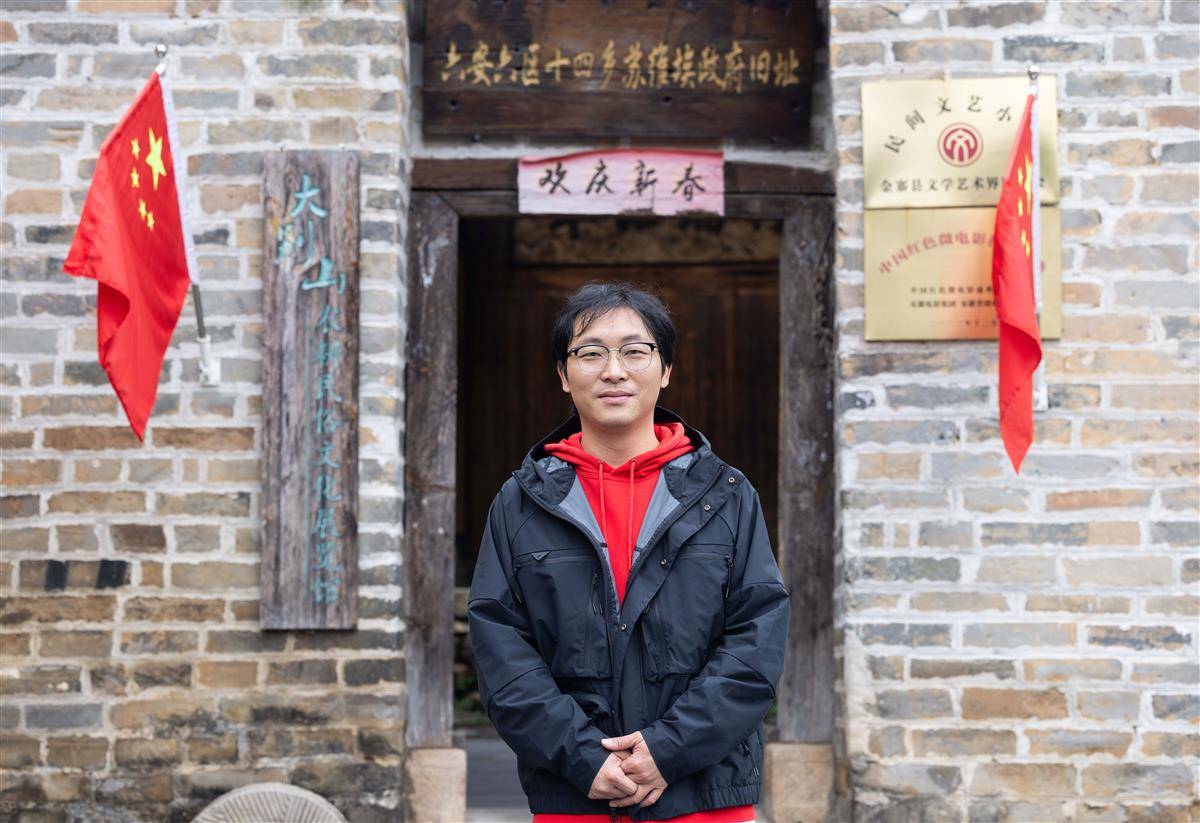 漆黎明在大别山农耕民俗文化馆前留影。(湖北日报全媒记者 薛婷 摄)