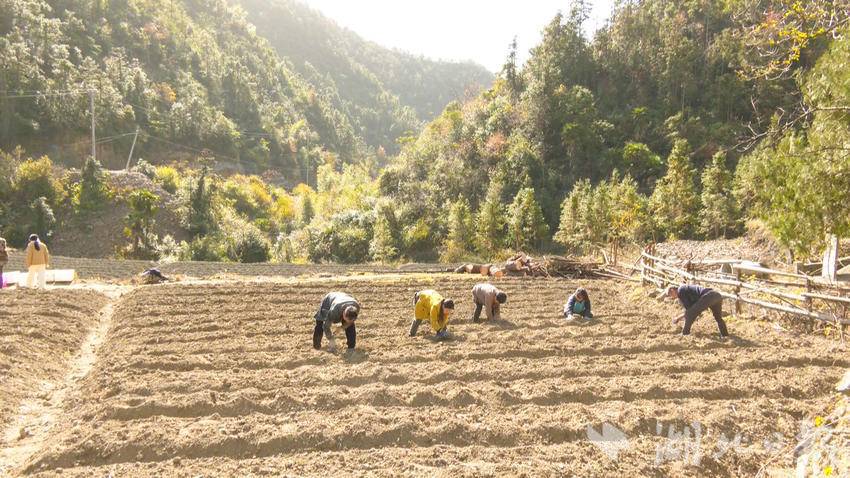 11月30日,在高枧乡中山村梯冲黄精种植基地,十多位村民分工协作、默契配合,弯腰装卸黄精芽头,或是手持农具精准挖坑,细心埋种覆土,动作娴熟利落。基地另一侧,整地收尾工作也在紧锣密鼓推进,田间地头一派热火朝天的劳作景象,处处涌动着躬耕农事的活力与增收致富的期盼。
