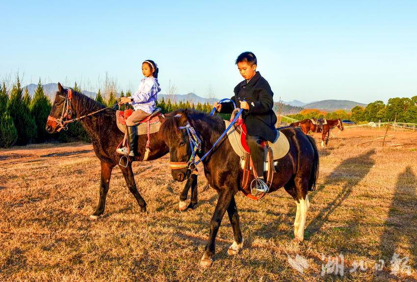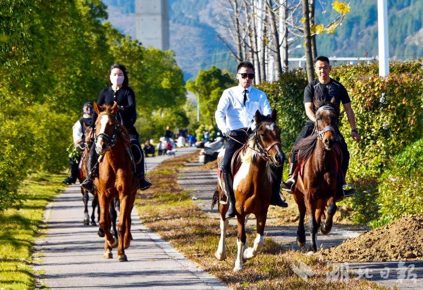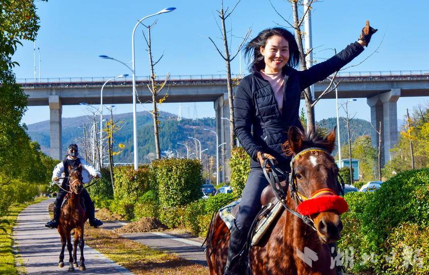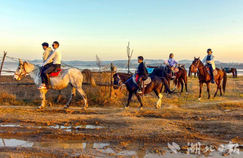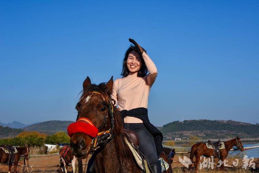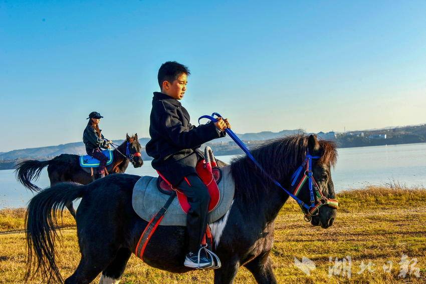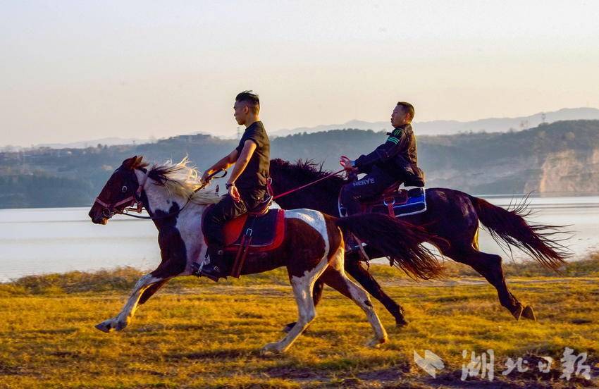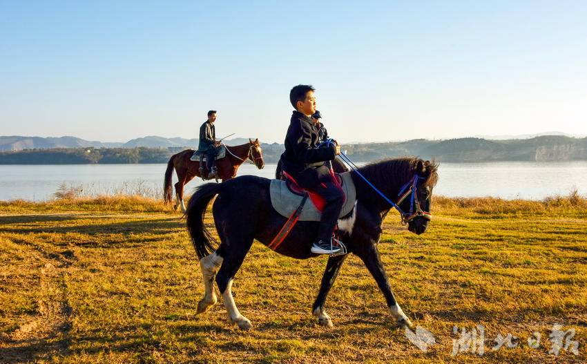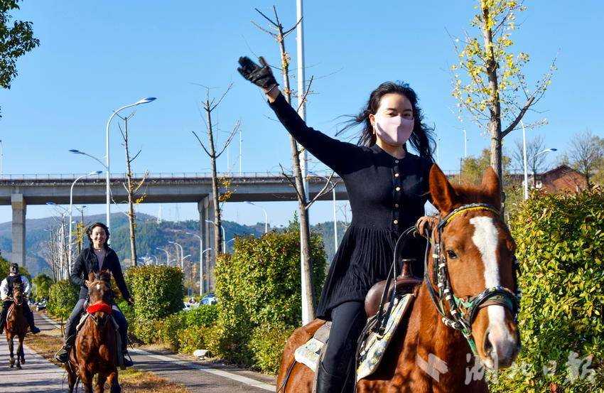 11月29日,一群年轻人骑着马在十堰市郧阳区汉江北岸江边纵马运动,年轻美女活跃其间。