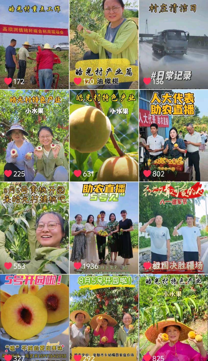如今,这场围绕村集体账号的耕耘已初见成效:自今年3月中旬注册至今,村级抖音号“淳美皓光”发布视频90期,吸粉1000余人,总浏览量超51万;微信视频号“水润橘桑H淳美皓光”发布视频125期,粉丝数即将破千,总浏览量达54万多。账号的蓬勃发展为后续的农产品推广、乡村品牌建设打下了坚实基础。