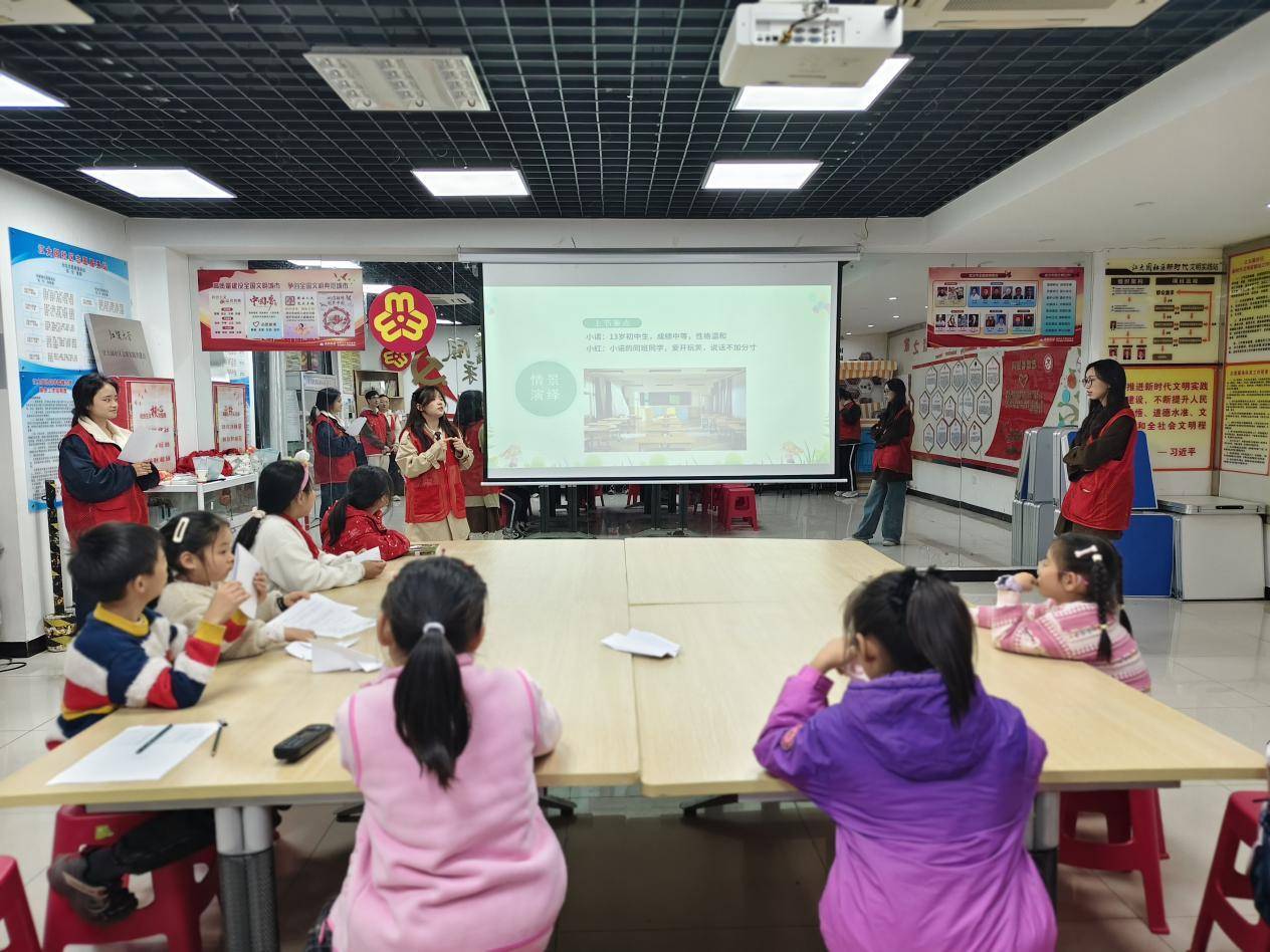 同时,志愿者们还用孩子易懂的通俗语言,将《中华人民共和国未成年人保护法》比作守护成长的“超级英雄铠甲”,系统讲解家庭、学校、社会、网络、政府、司法“六大保护”体系。结合“妈妈偷看日记是否合理”“商贩向未成年人售烟是否正确”等贴近生活的案例,深入浅出地解析隐私权、劳动保护、校园欺凌防治等核心法律概念,让晦涩的法条变得鲜活可感。