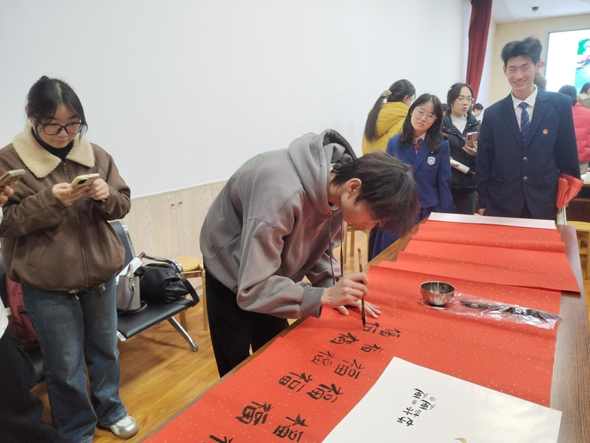 活动现场温情涌动。三石书画室石维林老师特意为高校志愿服务团队题写“风华正茂 志愿当时”墨宝,勉励青年志愿者传承奉献精神。高校志愿者则精心创作“百福图”回赠三石书画室。这份双向馈赠不仅饱含对社区文化公益事业的诚挚谢意,更彰显了志愿服务精神代代相传、携手共进的美好愿景。