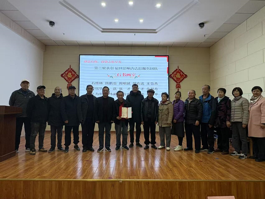 表彰环节重点表彰“最美志愿者”与“最具影响力志愿团队”两类先进典型。21位居民荣获“最美志愿者”称号,8支社区志愿团队及多所高校志愿服务队获得团队荣誉。这些先进集体与个人的事迹鲜活感人:志愿者累计开展禁鞭巡查11次、清洁家园行动11次、洪山江滩巡查值守48次,以坚实脚步守护社区安宁;三石书画室全年开展23场公益书法课,以笔墨丹青传递文化温情;金色阳光宣讲队创新采用三句半、快板、采莲船等群众喜闻乐见的形式开展政策宣传,获评区级奖项;护绿小分队16名成员秉持“我的家园我守护”的主人翁精神,将金色共享小院打造成居民茶余饭后的休闲胜地和情感交流的温暖港湾;暖心烘焙队、“爱上阅读”亲子共读小组、启蒙公益英语课堂等团队凭借特色服务温暖人心,惠及众多青少年;高校志愿服务队充分发挥专业优势,为社区志愿服务注入青春活力。
