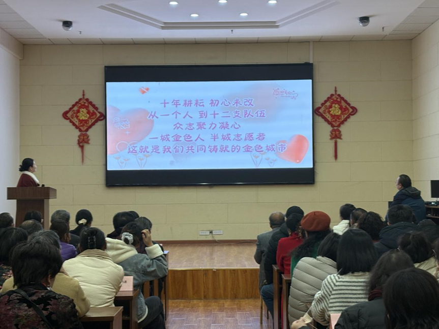 湖北日报讯(通讯员黄颖)近日,武汉市洪山区张家湾街道金色城市社区举办“小我微光成炬 众志聚力凝心”2025年志愿者表彰大会。街道相关负责人、百余名志愿者代表欢聚一堂,共同见证志愿精神在社区的温暖传递。