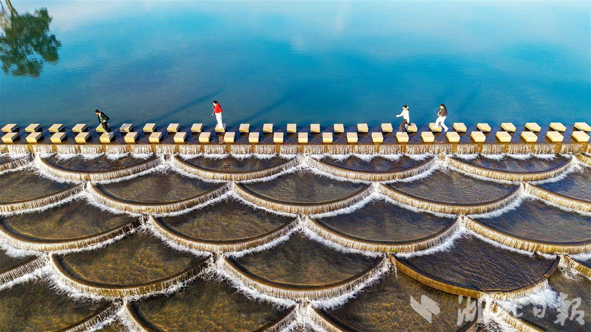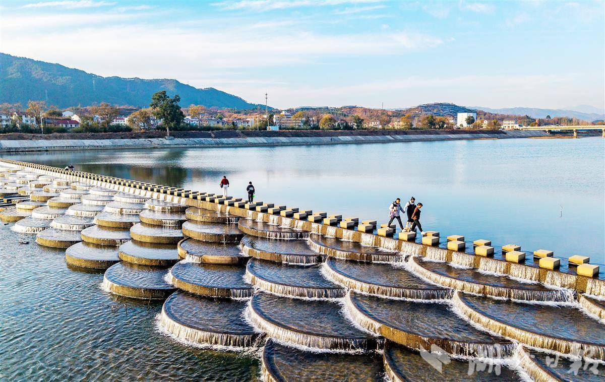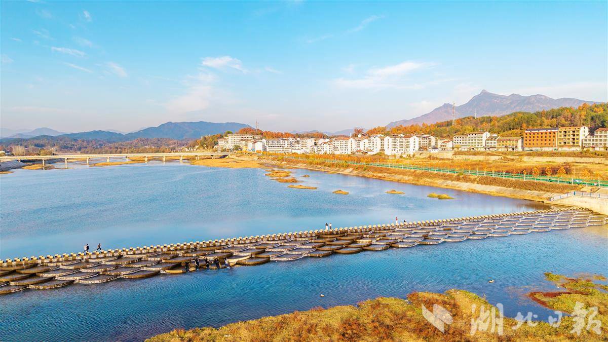 11月30日,黄冈市英山县杨柳湾镇东河鱼鳞坝似银鳞铺展,岸边村落错落、山林斑斓,游客临水赏景,乐享冬日暖阳。近年来,英山县杨柳湾镇以“一镇一特色”为文旅发展抓手,将农村生态资源转化为农旅优势,串联周边村落打造“一村一景”休闲链 ,让山水风光与乡土风情相融,蹚出了农旅融合的特色发展路。(视界网 王江 摄)