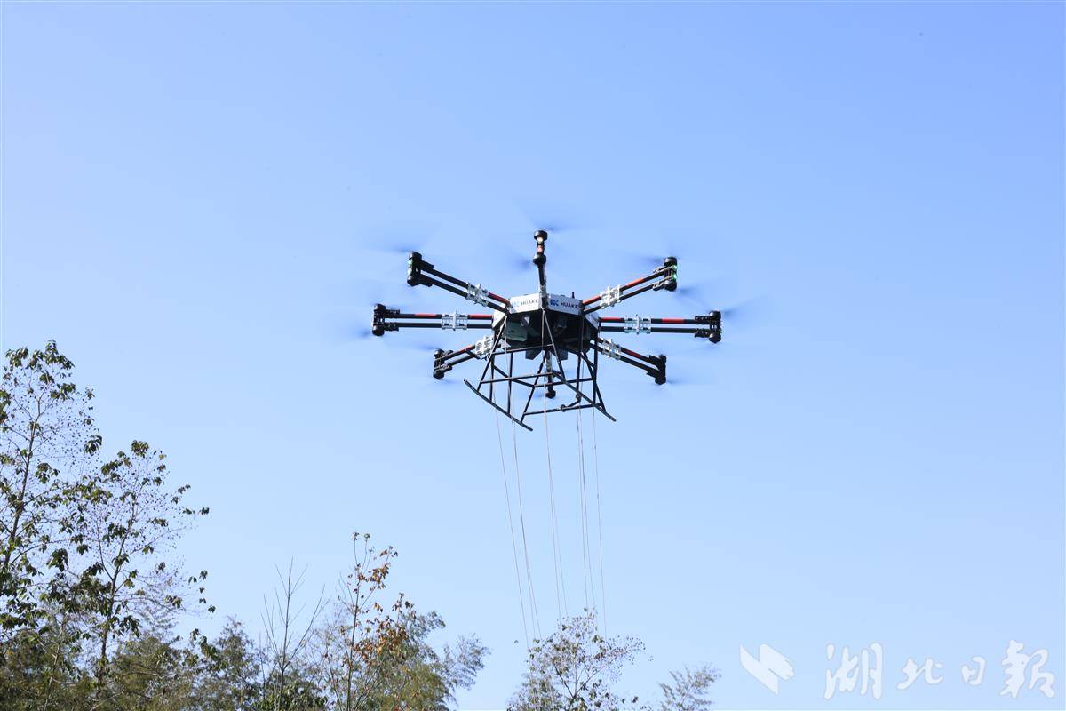 华中科技公司构建智能化施工新范式,让低空重载无人机助力电网工程建设。