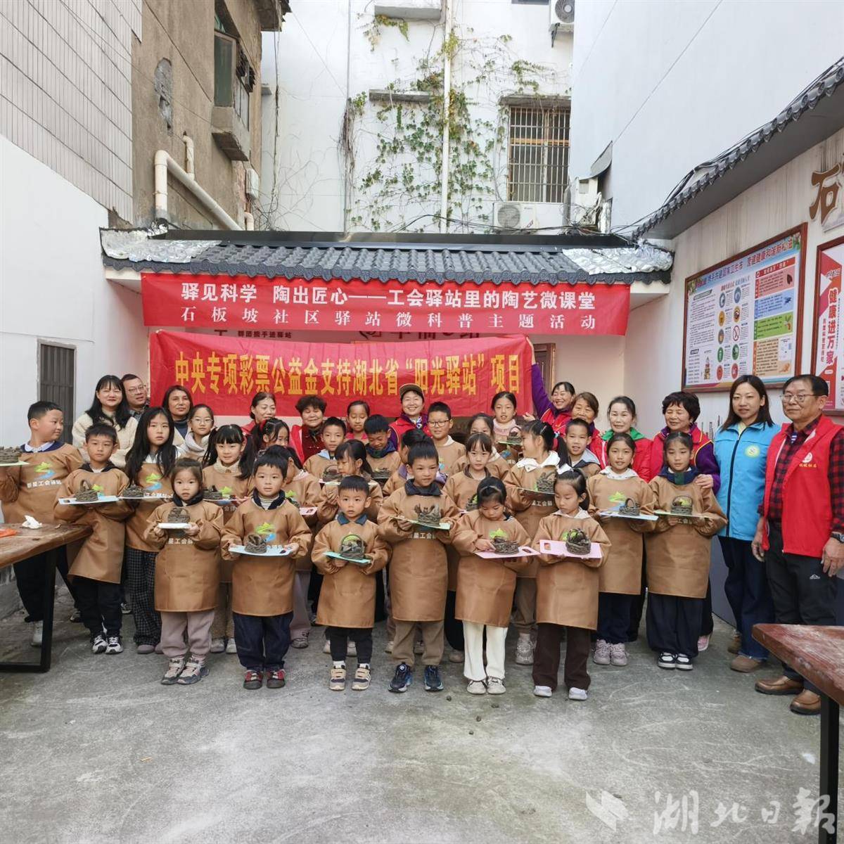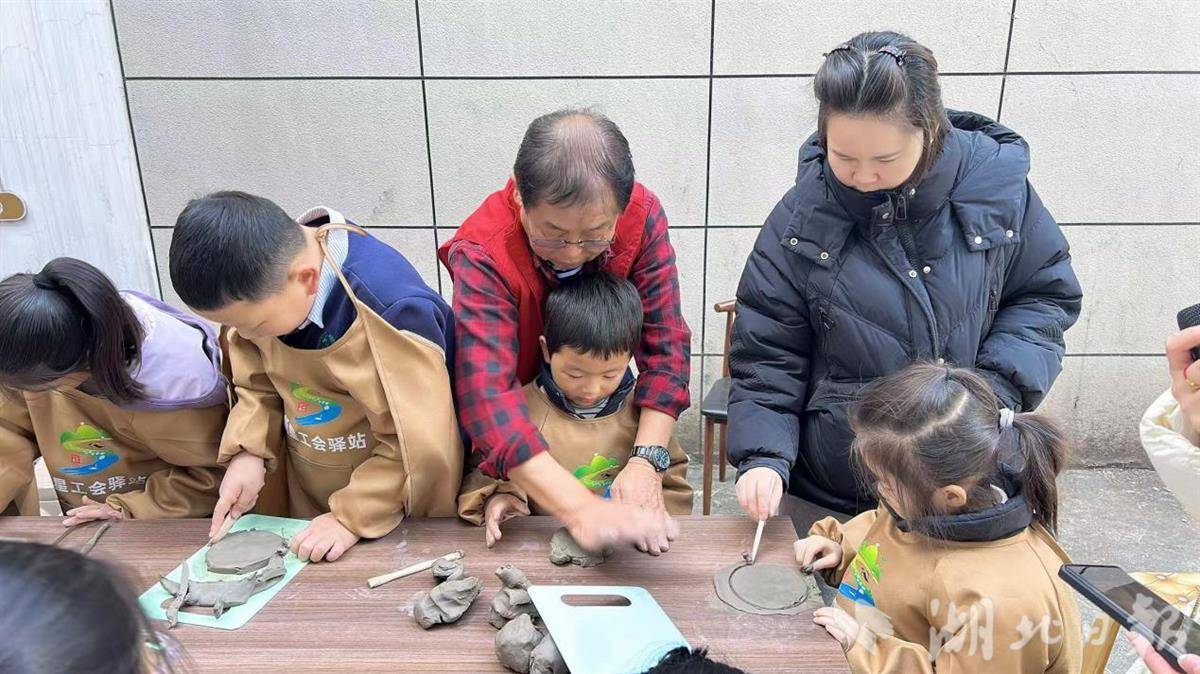 湖北日报讯(记者张华、通讯员卢冰洁)上午学陶艺,下午打腰鼓,揉泥成趣,击鼓寻乐,松滋市新江口街道石板坡社区新星驿站里,孩子们欢乐极了。11月29日,松滋市新江口街道石板坡阳光驿站特邀陶艺手艺人黄元忠与爱心奶奶志愿服务队开展亲子活动,吸引26组家庭参与。