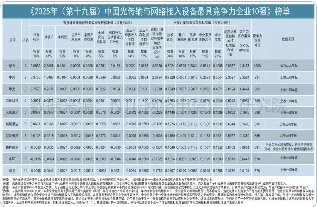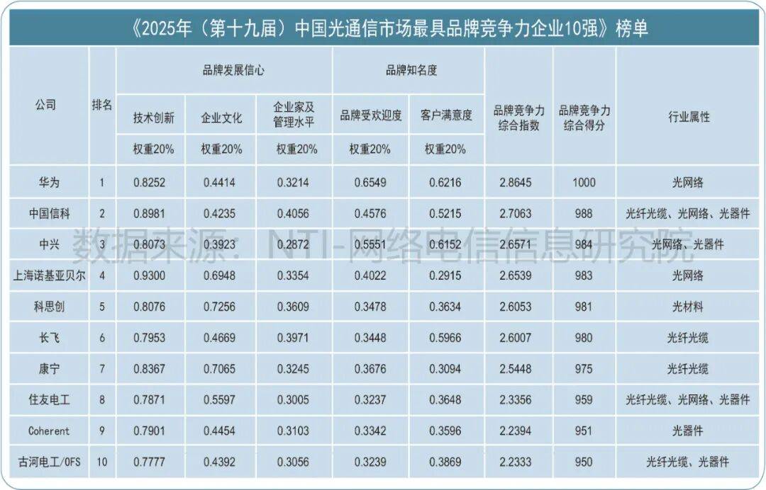 烽火通信在光纤光缆、光传输与网络接入设备等领域同时斩获全球及中国10强,还荣获“2025年中国光通信最佳技术创新奖”。