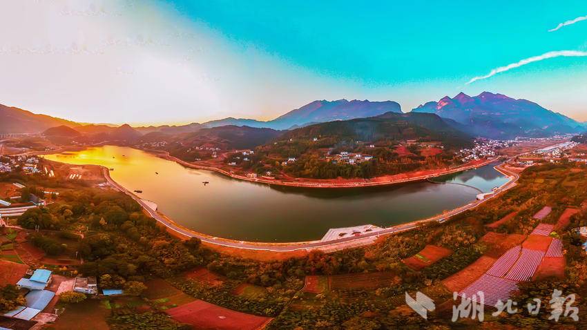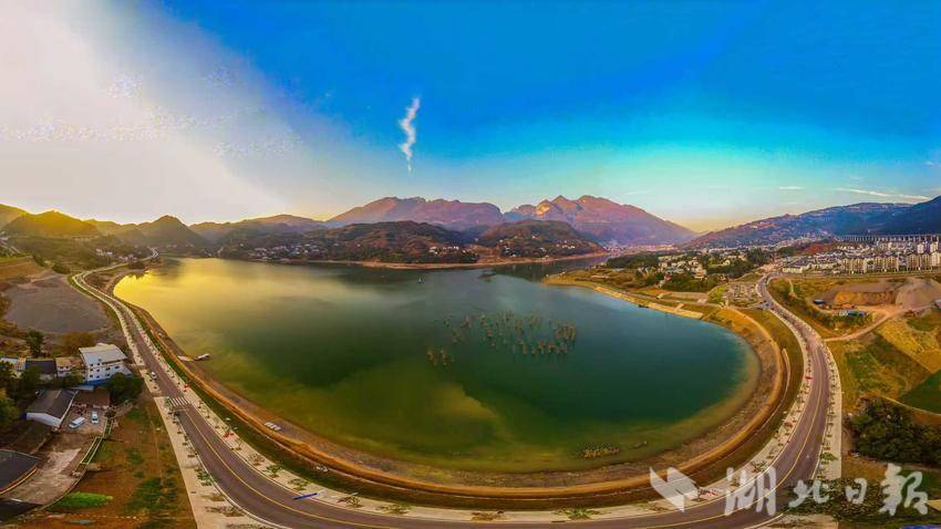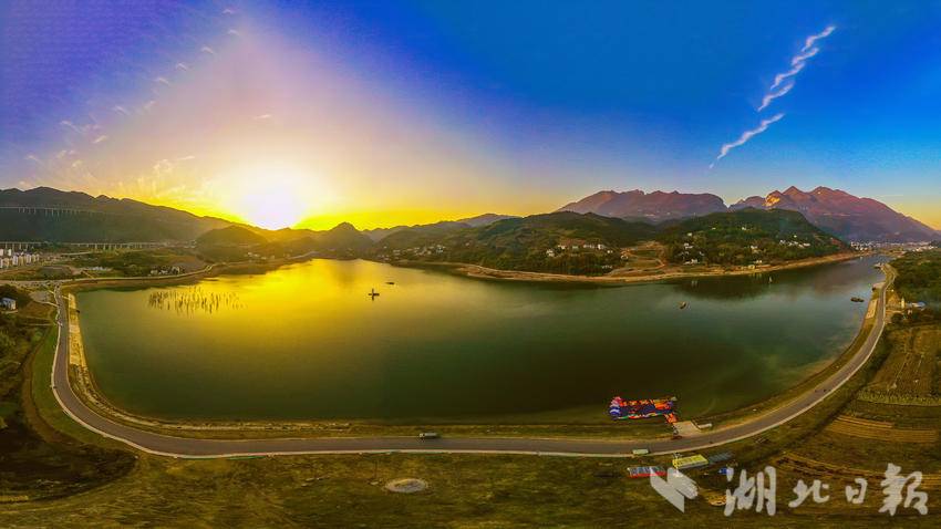 湖北日报客户端讯(通讯员张厚渊、管清鹏)11月29日,夕阳下的巴东县神农湖,湖岸草长莺飞,湖中碧波荡漾,白鹭展翅翱翔,宛若诗画水乡泽国。两岸栾花仍泛着红晕,倒影湖中。特别是新建的环湖大道,似仙女彩带般飘落湖边,与簇簇栾花相映成趣,构成一幅自然天成的绝美画卷。