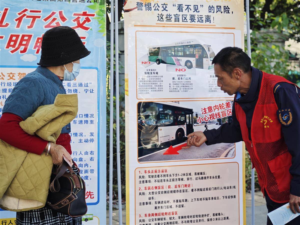湖北日报讯(通讯员黄成、李毕丹)为响应2025年全国交通安全日“文明交通、礼行天下”的主题号召,进一步普及文明交通知识,倡导安全出行理念,12月2日上午,武汉公交四公司“文明之旅”志愿服务队队员们走进薇湖路公交停车场公交站点,开展“文明交通我参与、礼行天下我当先”主题宣传活动,通过展板讲解、资料发放、互动问答等丰富形式,为市民送上一堂生动的交通安全“公开课”。