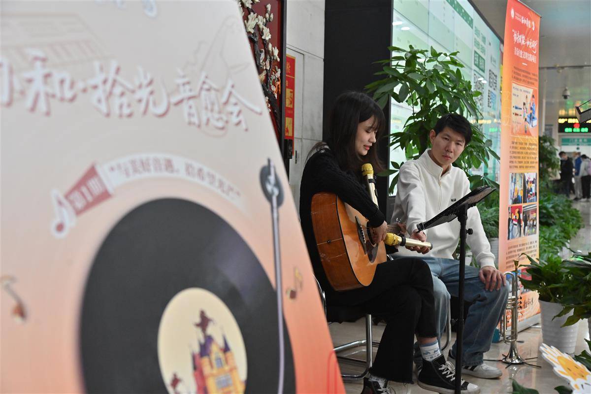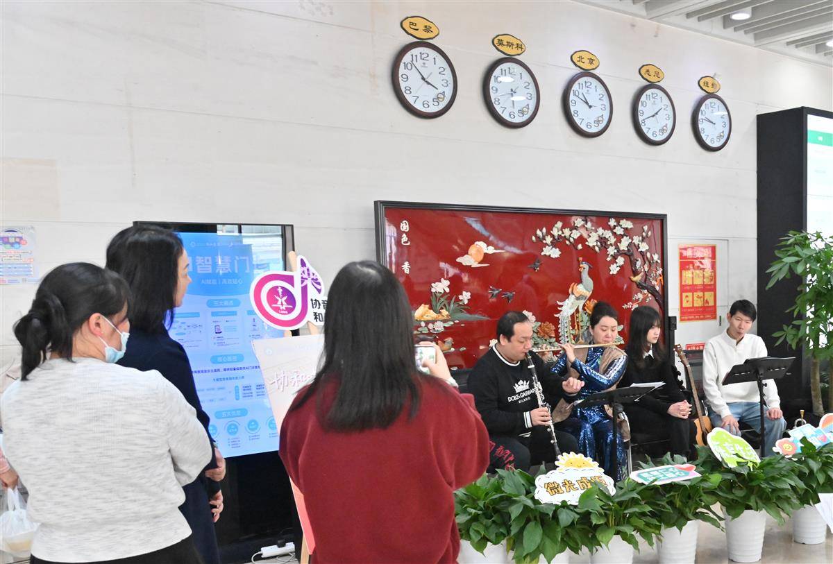 就诊人群驻足欣赏“音愈会”。(湖北日报通讯员 赵炯 摄)